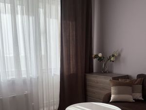 Сдаётся 1-комнатная квартира площадью 34 кв.м. с евроремонтом на 13 этаже в 25-этажном доме. Из техники есть: