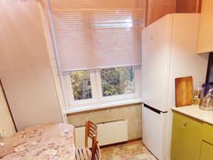 В жилой комнате два раскладывающихся дивана, два шкафа, стол и стулья. На кухне вместительный холодильник, стеклокерамическая плита с духовкой, обеденный стол. Стиральная машина установлена в ванной комнате. Также там ванна и полотенцесушитель.