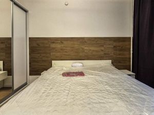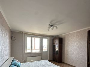 Балкон застеклен. Стеклопакеты, ламинат. Стенка, мягкая мебель, ТВ, кухонный гарнитур, холодильник, стиральная машина. Сан. узел в плитке. Славян.