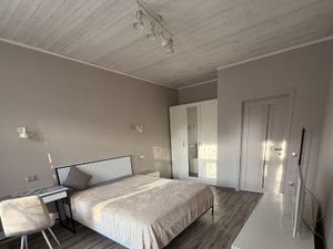 Квартира двухкомнатная, уютная, с раздельным санузлом (сантехника в хорошем состоянии, все белое и чистое). Высокие потолки и большие окна. В комнате - кровать с удобным матрасом, 2 комода, рейл для одежды, прикроватный столик, торшер, незастеклённый пустой балкон. В коридоре есть шкаф для одежды.