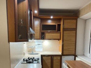 Жилая площадь 24 м2, кухня 7 кв.м, в квартире три спальных места, внутри евро ремонт, комнаты изолированные. Квартира меблированная, кухня под единой столешницей, холодильник, газовая плита, духовой шкаф, вытяжка, стиральная машина, пылесос, чайник, кухонный комбайн, кофемолка, утюг, гладильная доска, два телевизора, интернет с WI-FI. Совмещенный санузел, душевая кабина.