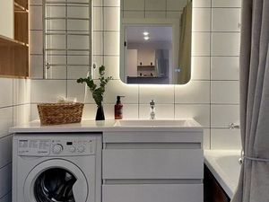 Квартира сдается впервые, состоит из кухни-гостиной и спальни, совмещенного санузла и просторной прихожей, полностью оборудована мебелью и пригодна для комфортного проживания, с новым ремонтом, оснащена новой мебелью и техникой. Из техники - стиральная машина, посудомоечная машина, кондиционер, холодильник, плита, духовой шкаф, микроволновая печь, вытяжка, телевизор. Установлены фильтры для питьевой воды. Полы керамогранит, ламинат.