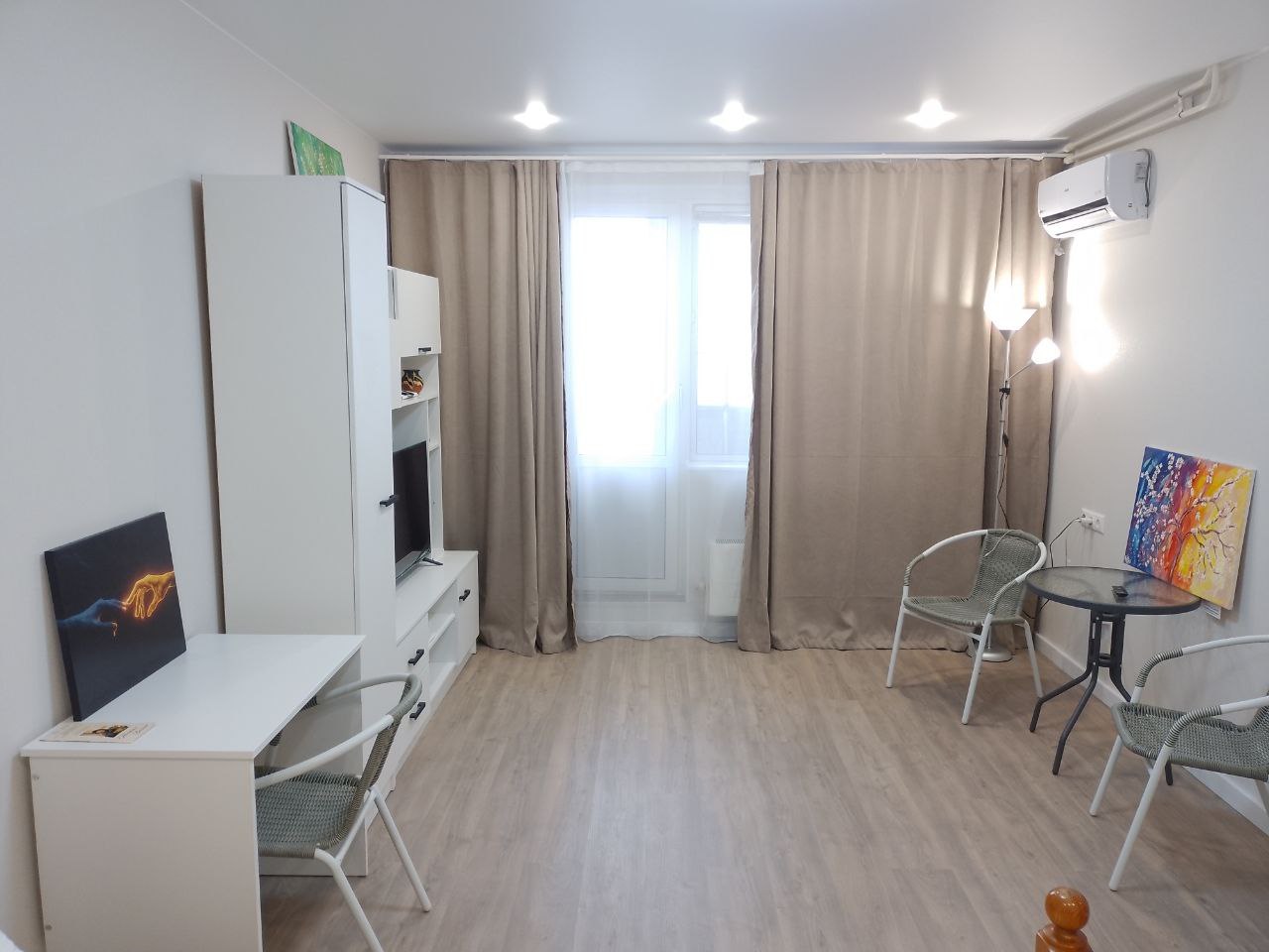 Есть всё для комфорта — от мощного кондиционера, двуспальной кровати с качественным матрасом, до больших шкафов с множеством мест для хранения .
