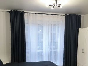 + квартира обеспечена всем необходимым - двуспальная кровать с тумбами, комод, телевизор, в кухне-гостинной кухонный гарнитур, кондиционер, посудомоечная машина, микроволновая печь, варочная панель, духовка, вместительный холодильник, диван-кровать и стол, стиральная машина в санузле