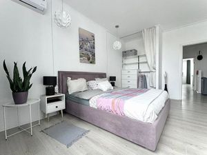 В квартире сделан косметический ремонт, что создаёт приятную атмосферу. В вашем распоряжении будет необходимая мебель на кухне и в комнате, а также вся необходимая техника: кондиционер, холодильник, стиральная машина и телевизор. Планировка студии включает совмещённый санузел с ванной, что удобно и функционально. Из окон открывается вид на улицу, а наличие лоджии добавляет пространства и света.