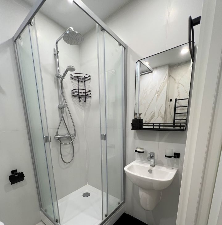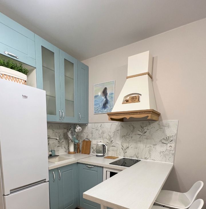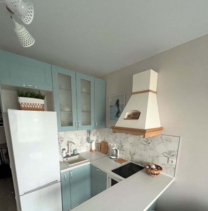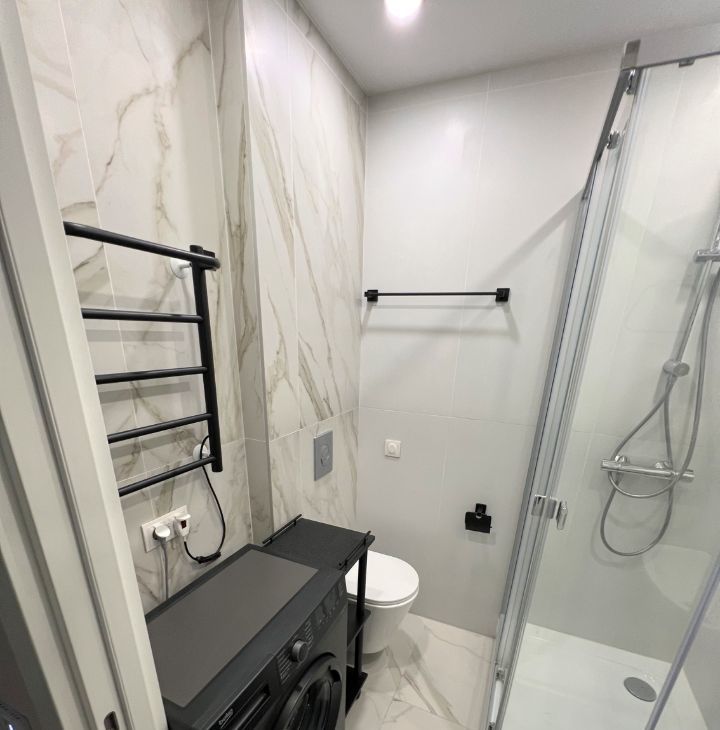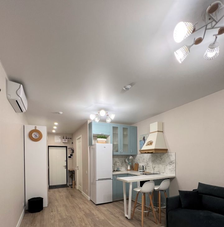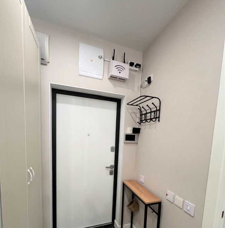 Вся необходимая мебель, посуда, много мест для хранения. Техника - кондиционер, стиральная машина, холодильник, индукционная варочная панель, вытяжка, микроволновая печь, посудомоечная машина, смарт ТВ 40 дюймов. Проведен интернет. Теплые полы. Система умного дома с управлением из приложения, с автозащитой от перенапряжения и протечек.