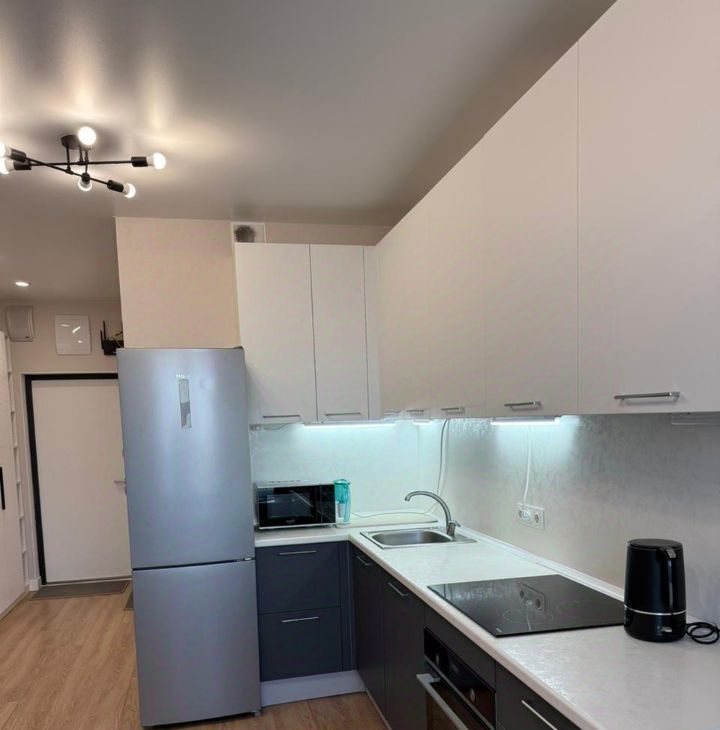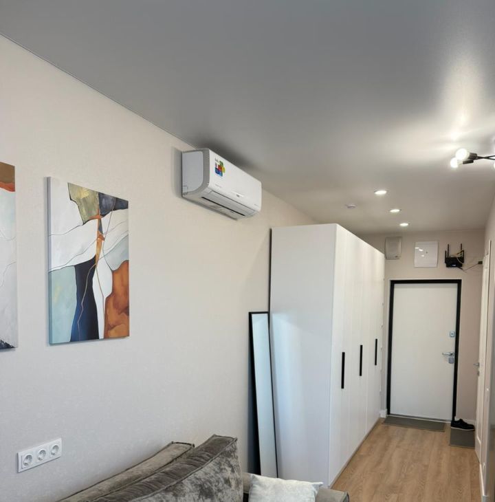 Удобный диван раскладывается в просторное спальное место. Большой высокий шкаф- много мест хранения. Посудомоечная машина, варочная панель , духовка, микроволновая печь, холодильник, вытяжка, стиральная машина, кондиционер- все это обеспечит комфорт в быту.