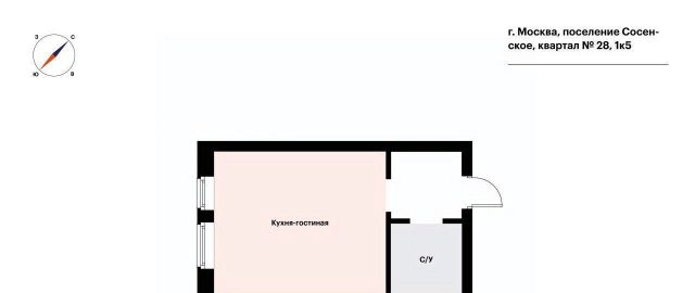 Студия Москва № 28 кв-л, 1к5 (21.5 м²)