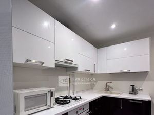 Квартира оборудована кухонным гарнитуром, мебелью и бытовой техникой. Есть: