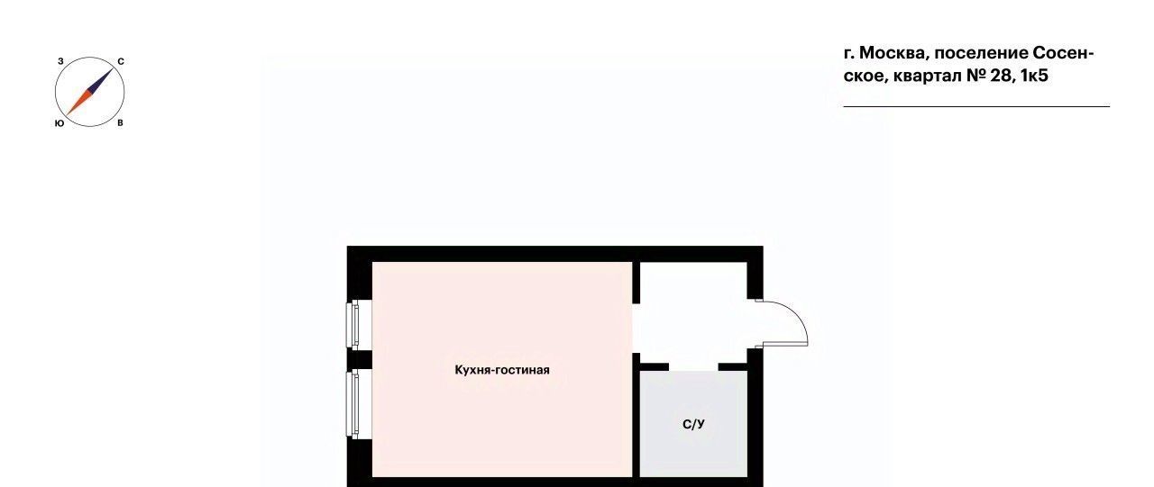 Студия Москва № 28 кв-л, 1к5 (21.5 м²)