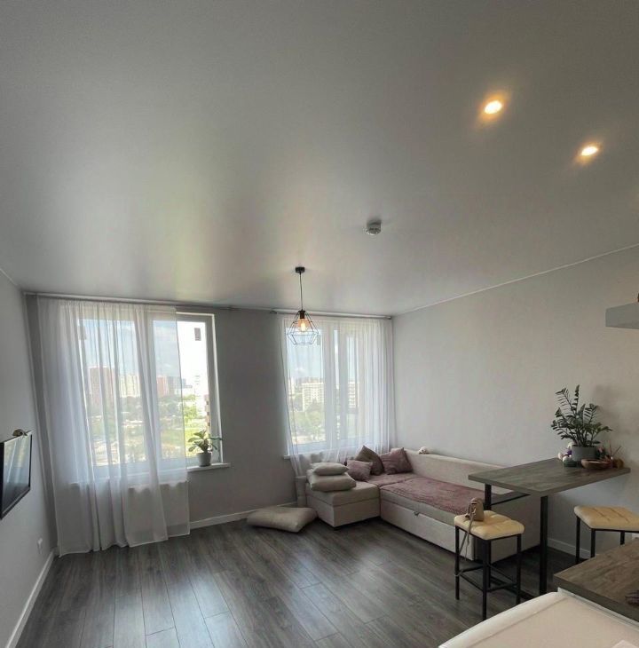 Сдается стильная студия площадью 27 м² в современном жилом комплексе "Грани". Вас ждет абсолютная тишина благодаря отличной шумоизоляции и комфортное проживание.