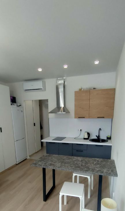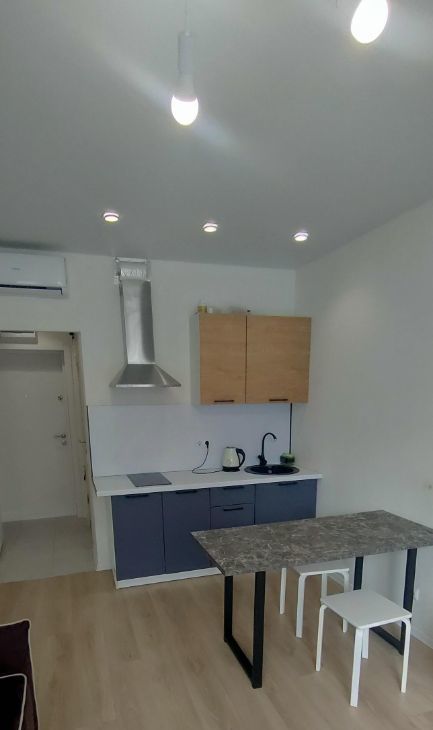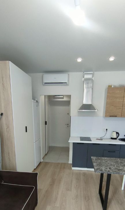 Сдаётся стильная студия с современным ремонтом в монолитном доме 2022 года постройки. Просторная кухня оборудована всем необходимым: холодильник, плита, вытяжка и обеденный стол. В комнате установлен кондиционер для комфортного проживания в любое время года.