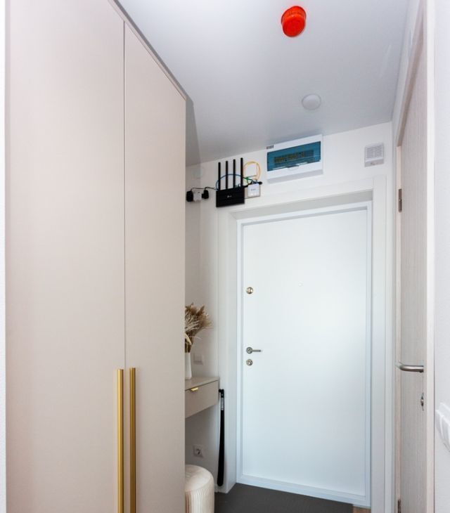 - Хранение: Большой 4-дверный шкаф в комнате, вместительный 2-дверный шкаф в прихожей, комод.
