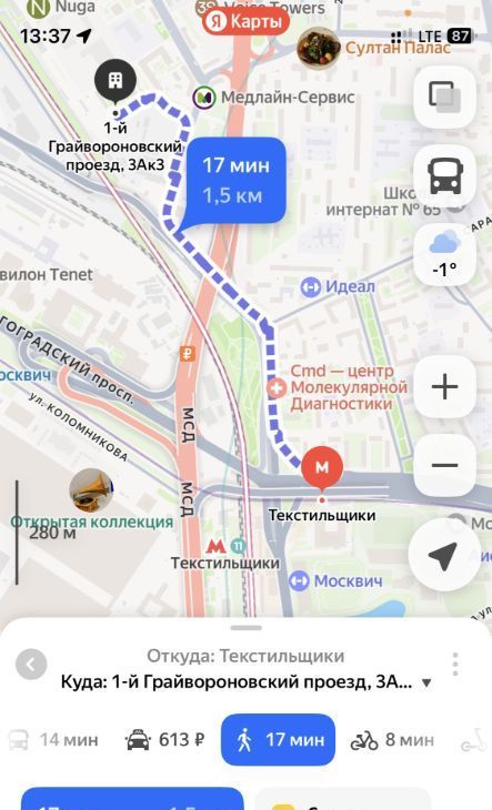 - Метро Текстильщики: 17 минут пешком (12 минут до м. Китай-город и Кремля).