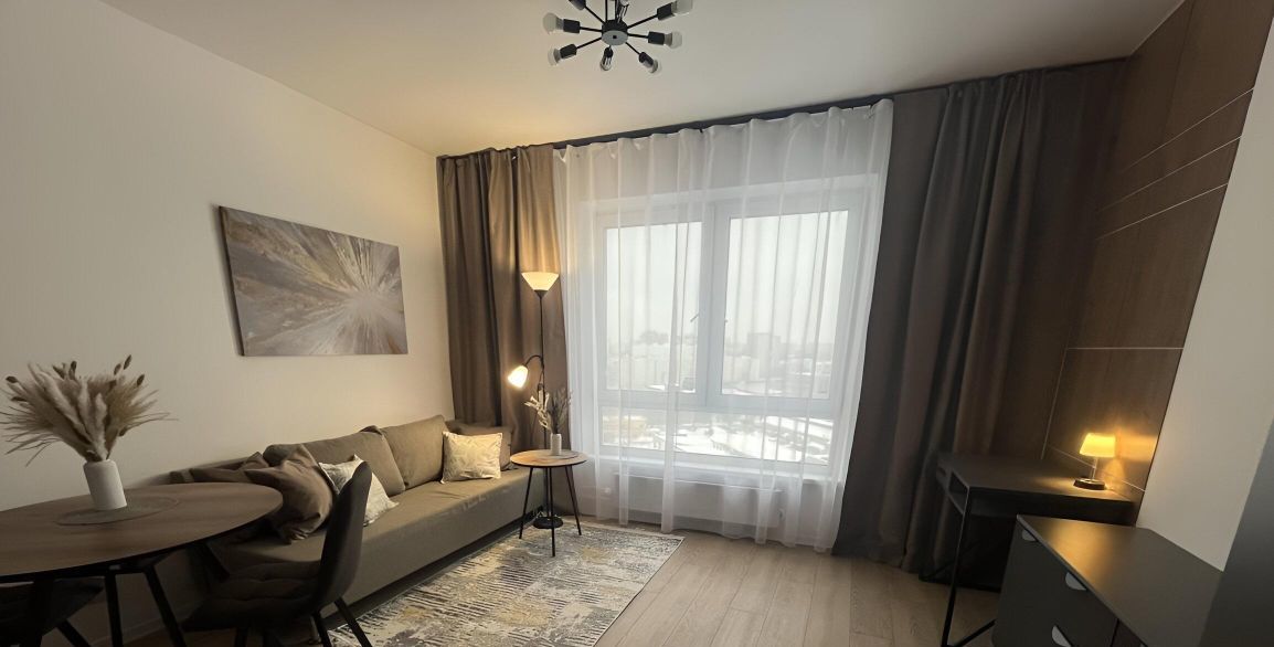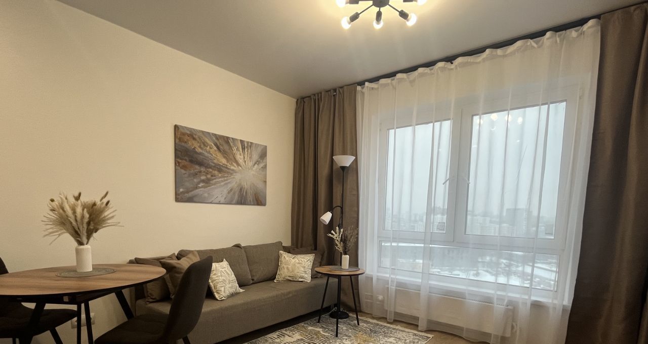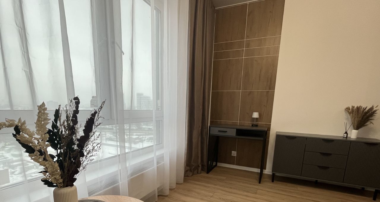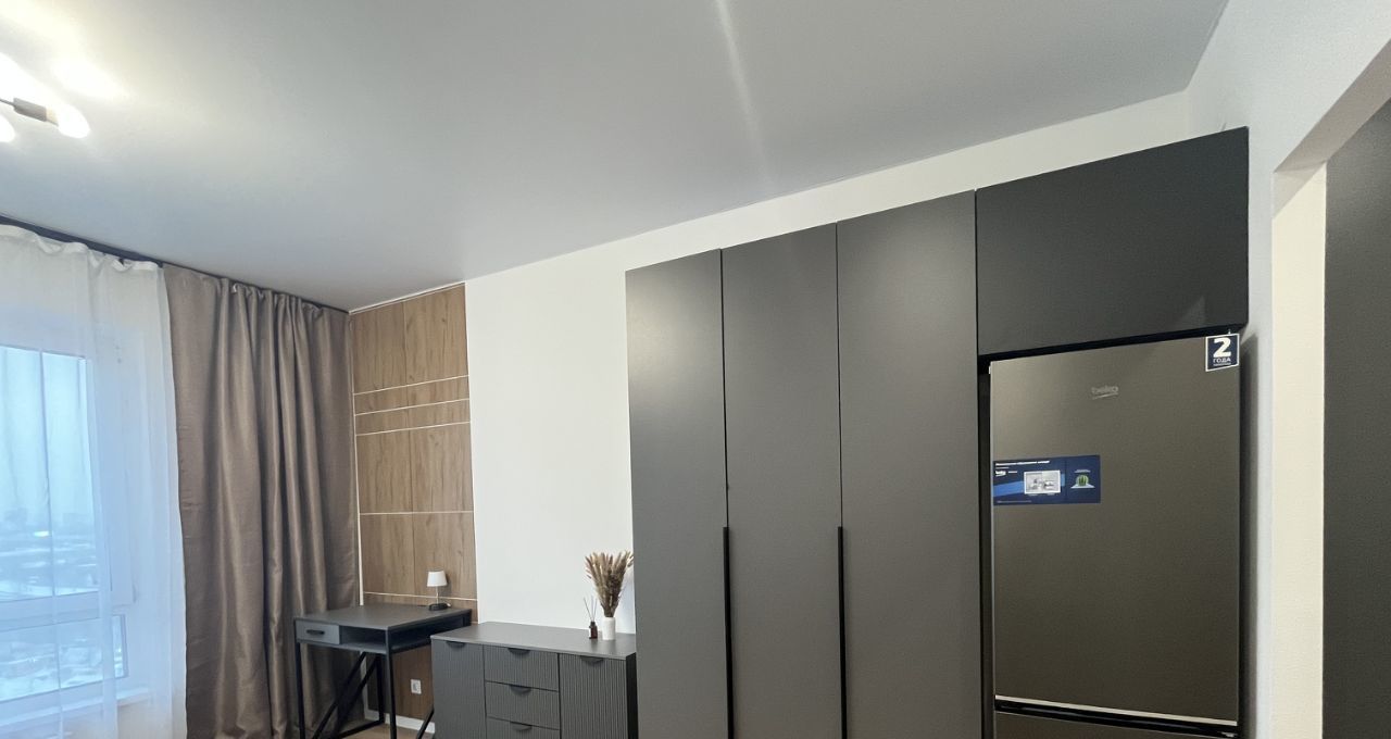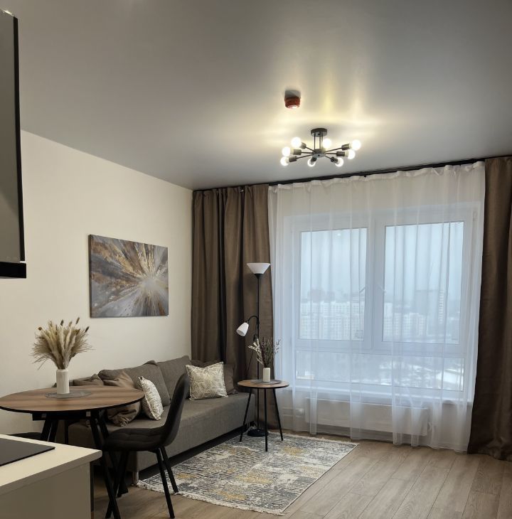 Впервые сдается просторная стильная квартира-студия с современным ремонтом и новой бытовой техникой и мебелью. В ЖК Волжский парк развитая инфраструктура: магазины, пункты выдачи, кафе, аптеки, детские сады, школы.