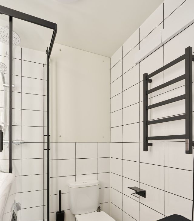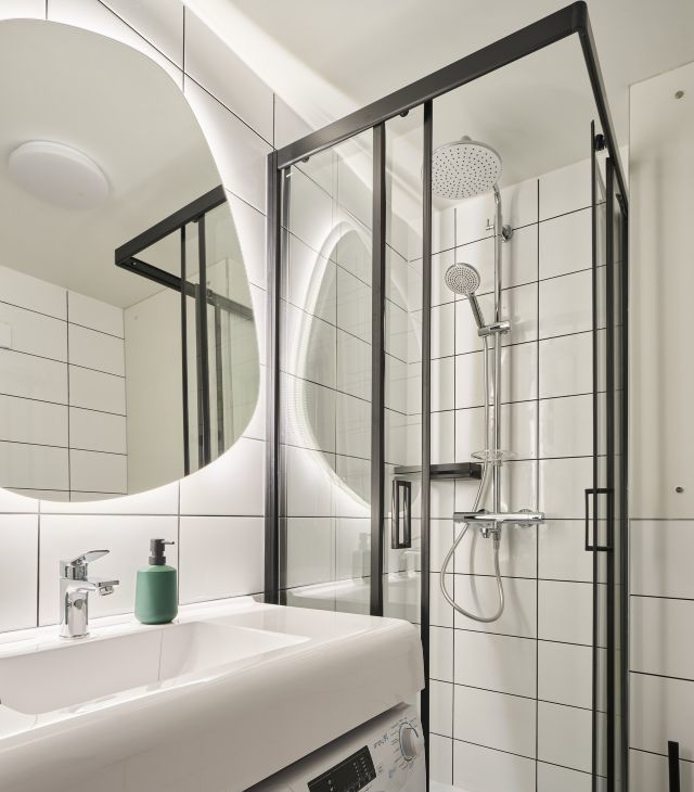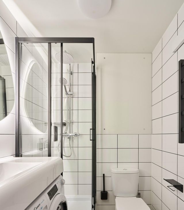 - в санузле: туалет, душевая кабина и стиральная машина;