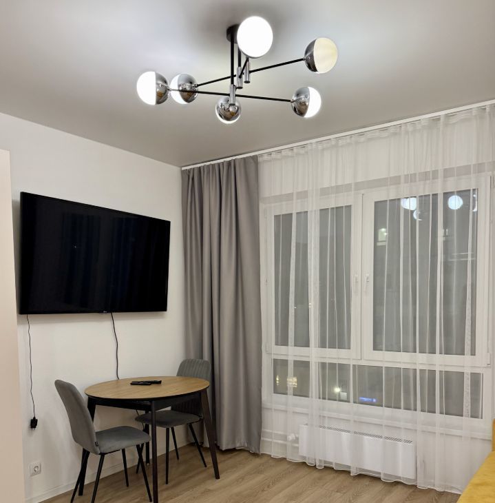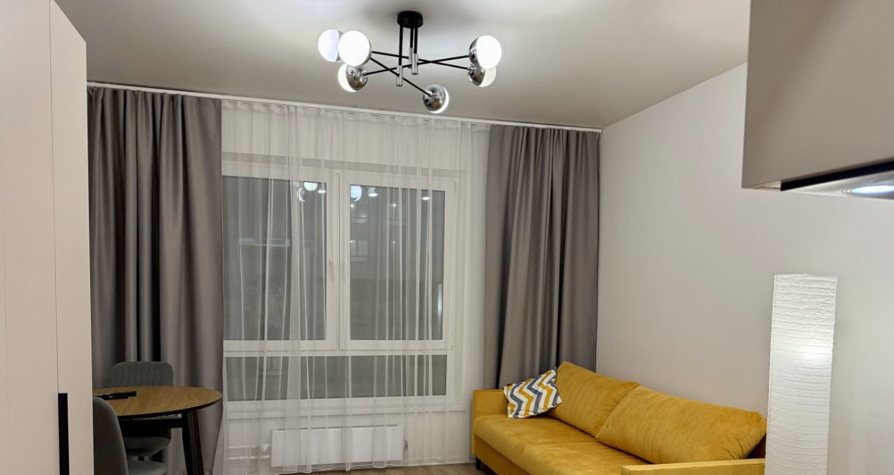 Сдается квартира-студия площадью 22 м2 с евроремонтом на 5 этаже в 17-этажном доме на срок от 11 месяцев. Из мебели и техники в квартире имеется: