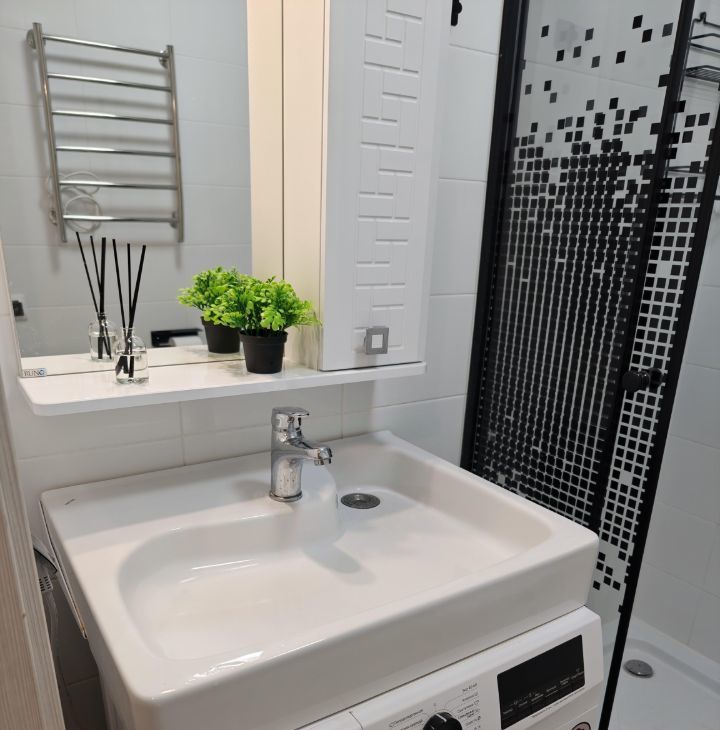 В квартире есть все необходимое для проживания: кухня с духовкой и всем необходимым, индукционная плита, вместительный удобный шкаф, комод, стол, диван (раскладывается в двуспальное место), холодильник, свч, чайник, стиральная машина, посуда, утюг, сушилка, одеяло, подушки и пр.