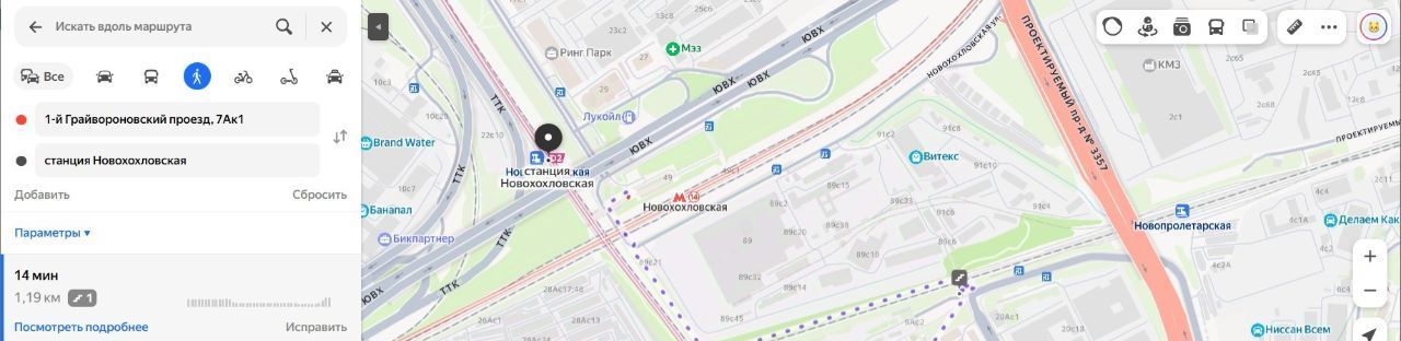 До станции "Новохохловская" 12-14 минут пешком по благоустроенному переходу. До станции метро Текстильщики 10 минут на автобусе или 18 минут пешком.