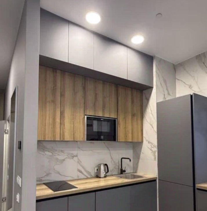 Современный дизайн от профессионалов Интерьер разработан студией дизайна TashaMDesign и воплощает последние тренды премиум-сегмента. Каждый сантиметр продуман до мелочей: • Функциональное зонирование: отдельные спальня, кухня-гостиная и санузел • Светлая палитра с акцентами, расширяющая визуальное пространство • Качественные материалы: современная плитка, стильные покрытия, фактурные развертки стен • Полная меблировка с учетом каждой зоны для максимального комфорта