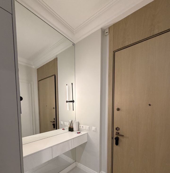 Интерьер выполнен в современном стиле — квартира очень светлая, уютная и красивая, создаёт атмосферу уюта и спокойствия.