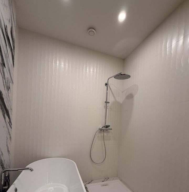 Ванная комната оборудована ванной и душевой стойкой, что обеспечивает максимальный комфорт.