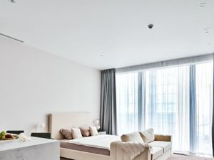 Панорамное остекление открывает захватывающие виды на столицу, наполняя пространство естественным светом и энергией.