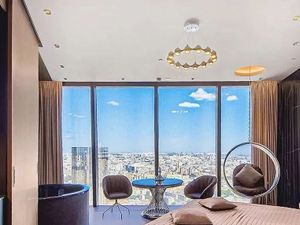 Панорамное остекление открывает захватывающие виды на столицу, наполняя пространство естественным светом и энергией.