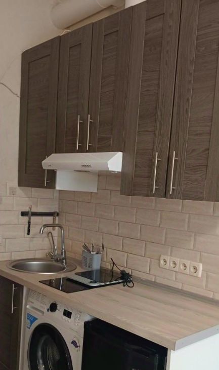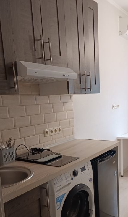 Предлагается МАЛОГАБАРИТНАЯ КВАРТИРА-СТУДИЯ (единое пространство комнаты и кухни) 14 метров общей площадью в добротном, тёплом КИРПИЧНОМ доме. Потолки - 3 метра! В студии из мебели - диван-кровать, встроенная кухня, варочная панель, стиральная машина, холодильник. Кондиционер. СУС в плитке - душевая кабина.