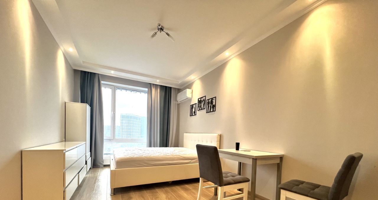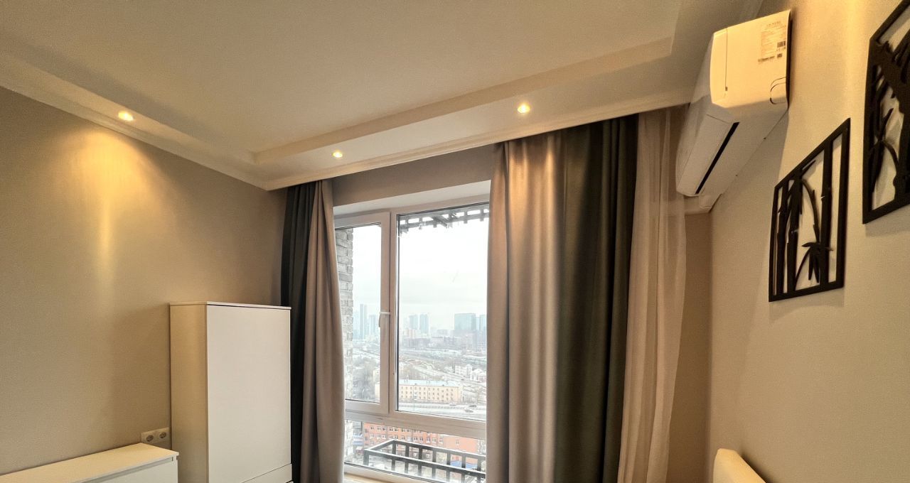 Сдаётся современная студия в апартаментах на 1-й Магистральной улице, в Москве. Общая площадь — 25 кв. м, жилая — 14 кв. м, кухня — 5 кв. м. Студия находится на 6 этаже 24-этажного здания. До метро Хорошёвская всего 10 минут пешком, что очень удобно для ежедневных поездок.