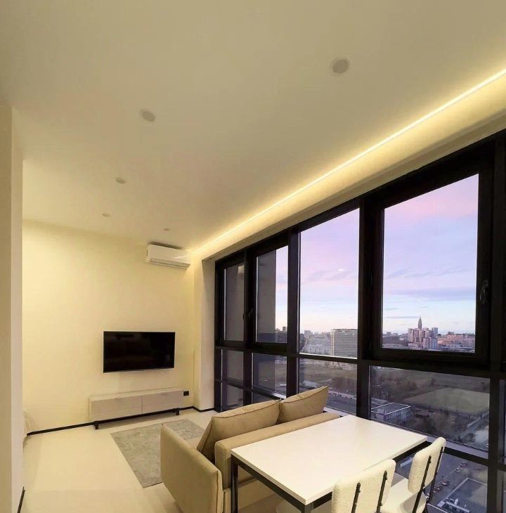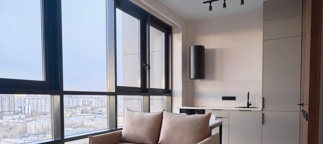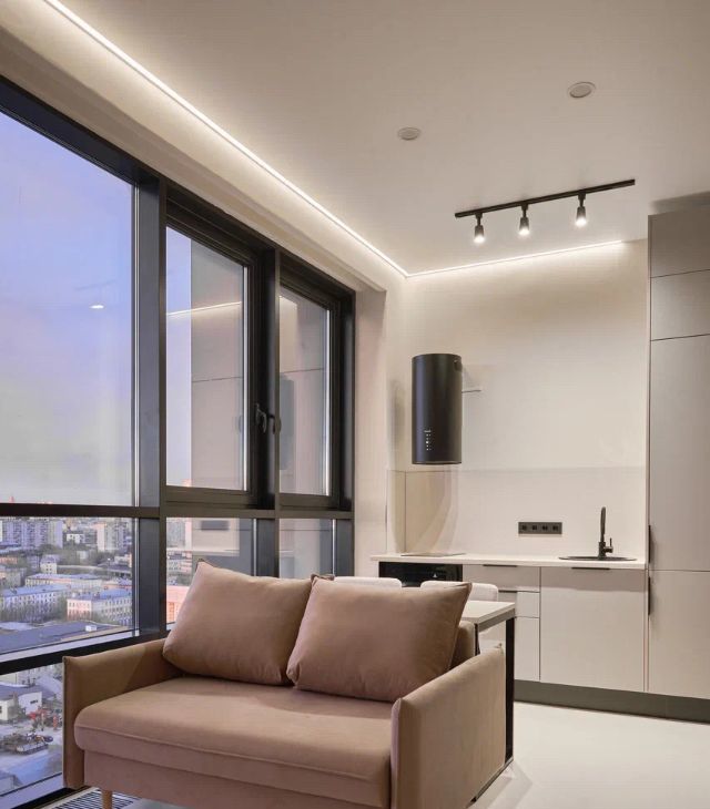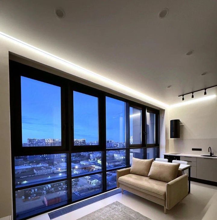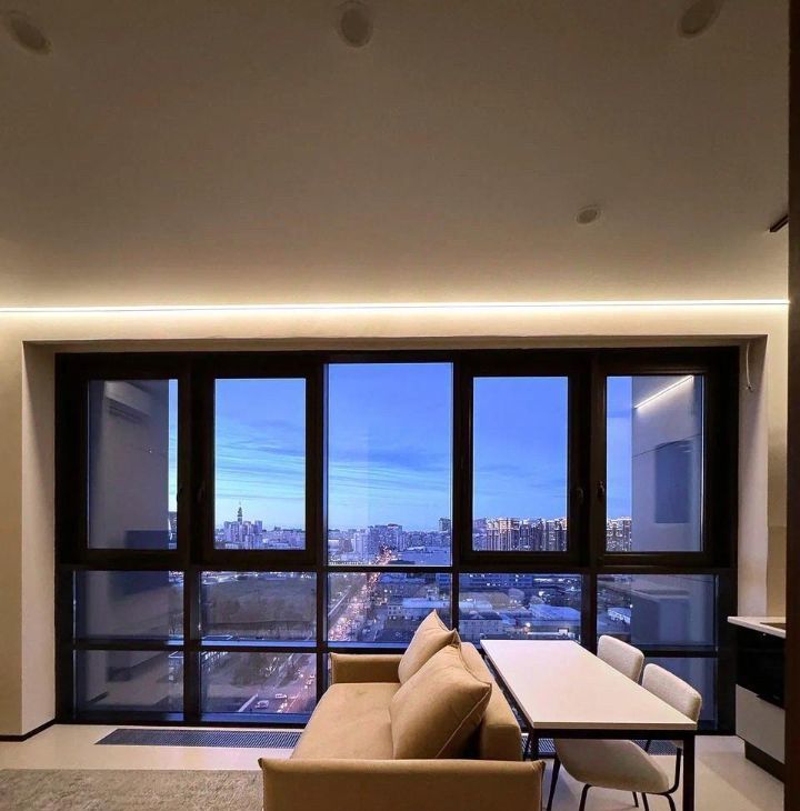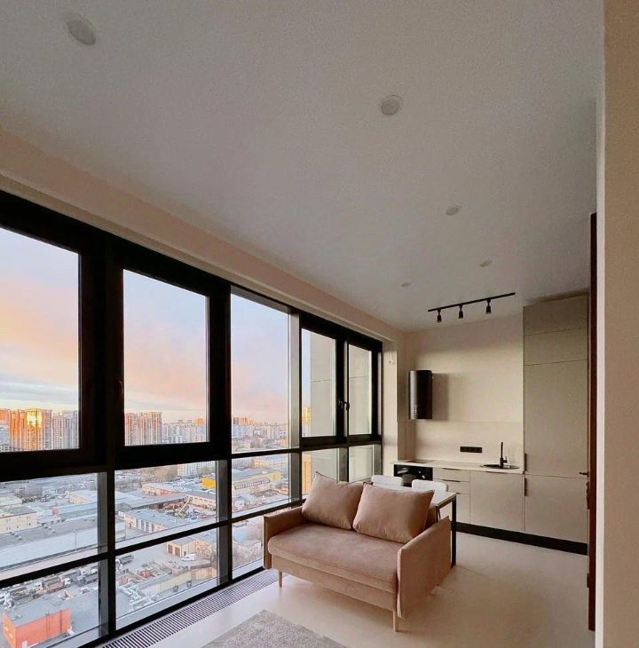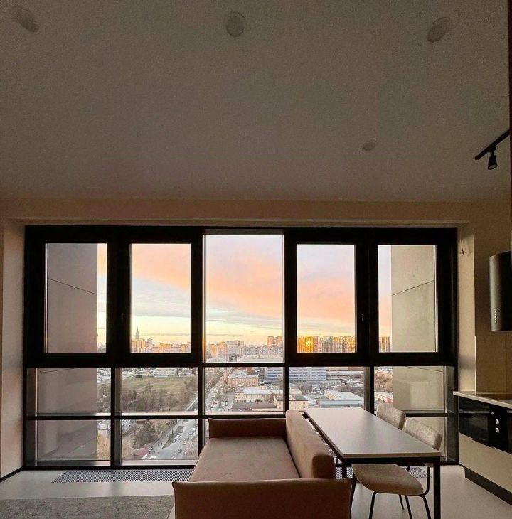 Студия с панорамным окном, где вы сможете наслаждаться прекрасным видом на город.