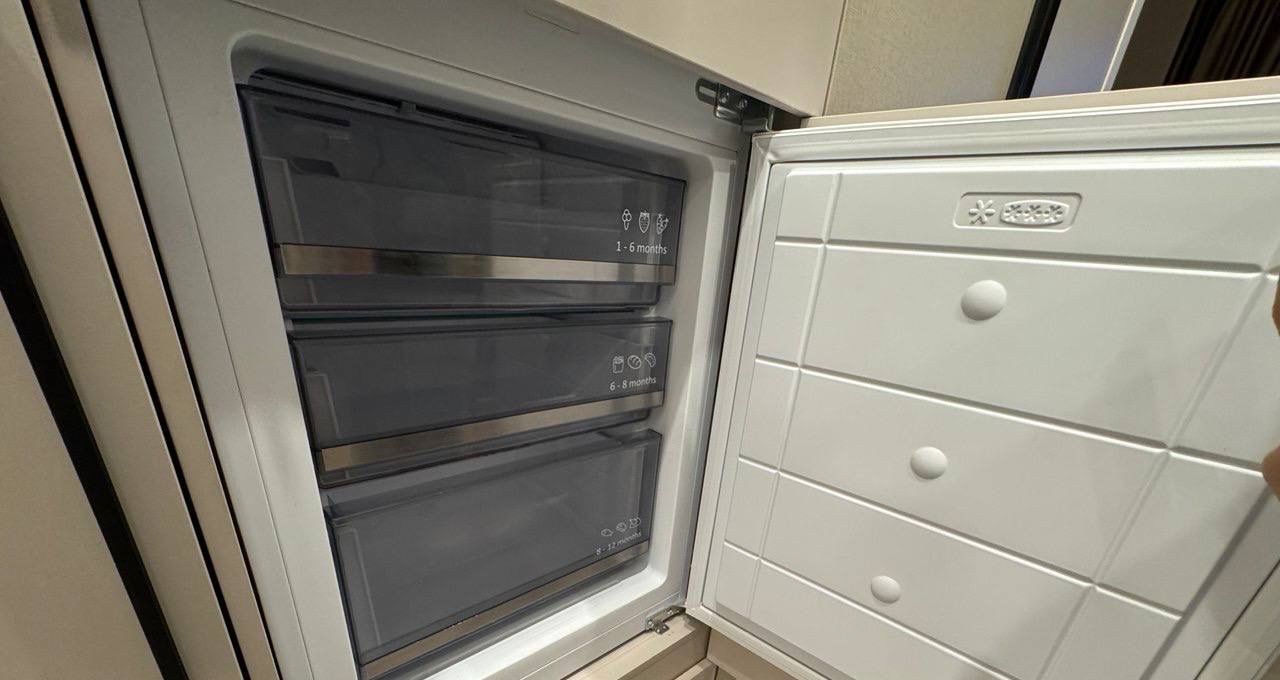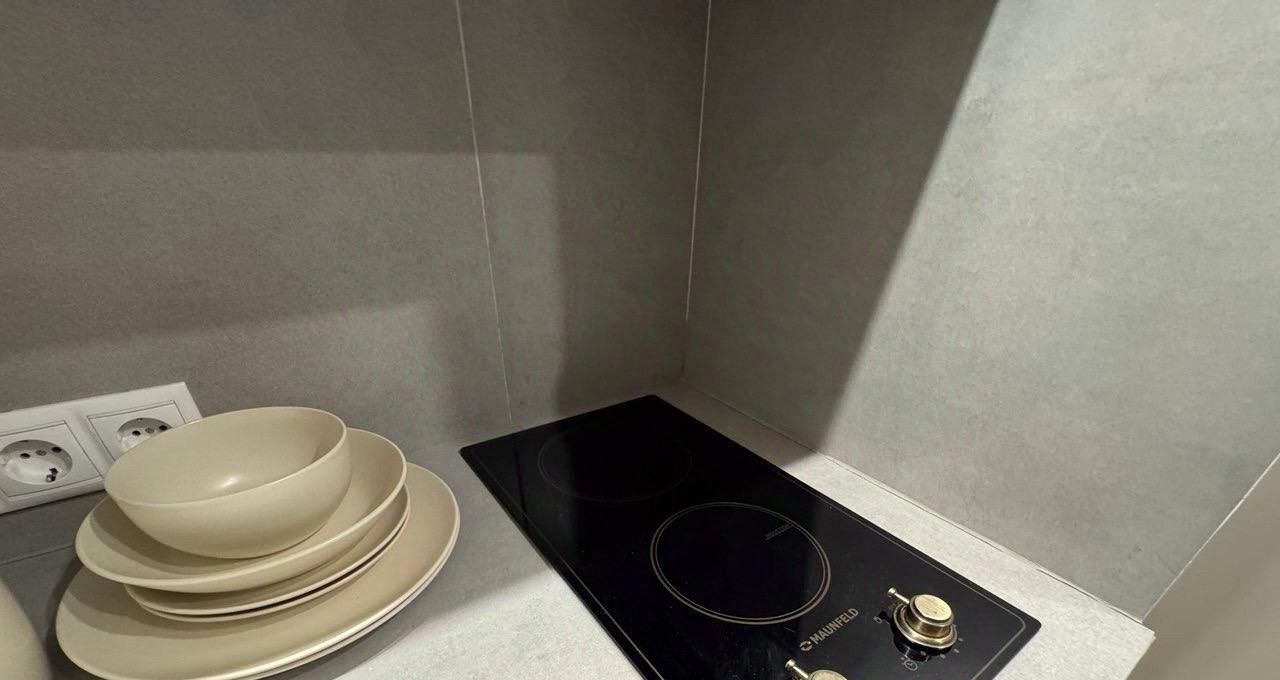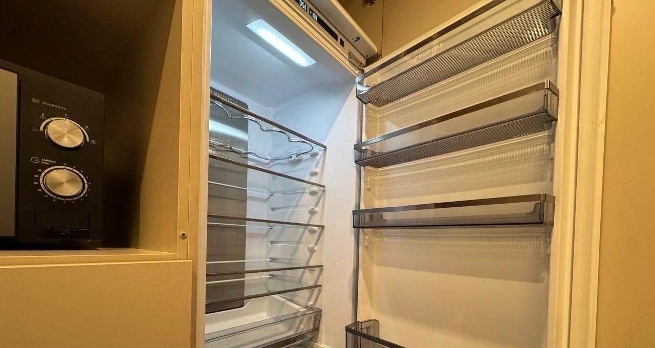 Холодильник, кондиционер, стиральная машина, индукционная панель, микроволновая печь, большой телевизор.