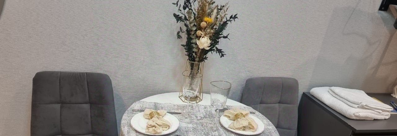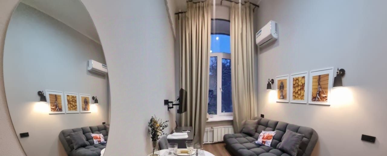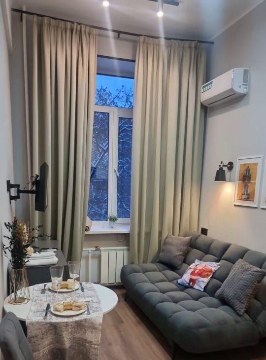 В нашей студии комфортно будет расположиться молодой паре, либо 1 человеку.Это 3 этаж ,дом кирпичный с высокими потолками , лифта нет но лестница широкая и удобная.