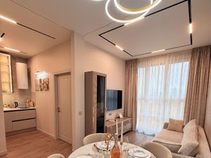 Квартира оборудована всей необходимой для комфортной жизни техникой и мебелью (кондиционер, холодильник, микроволновая печь, столик, места хранения, стулья, диван, удобный ортопедический матрас, электрический чайник, стиральная машина, электрическая плита).