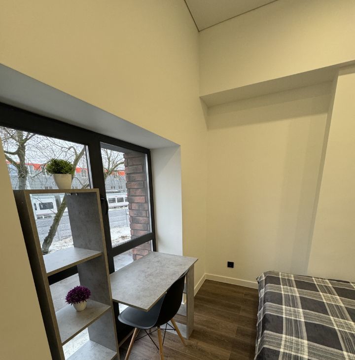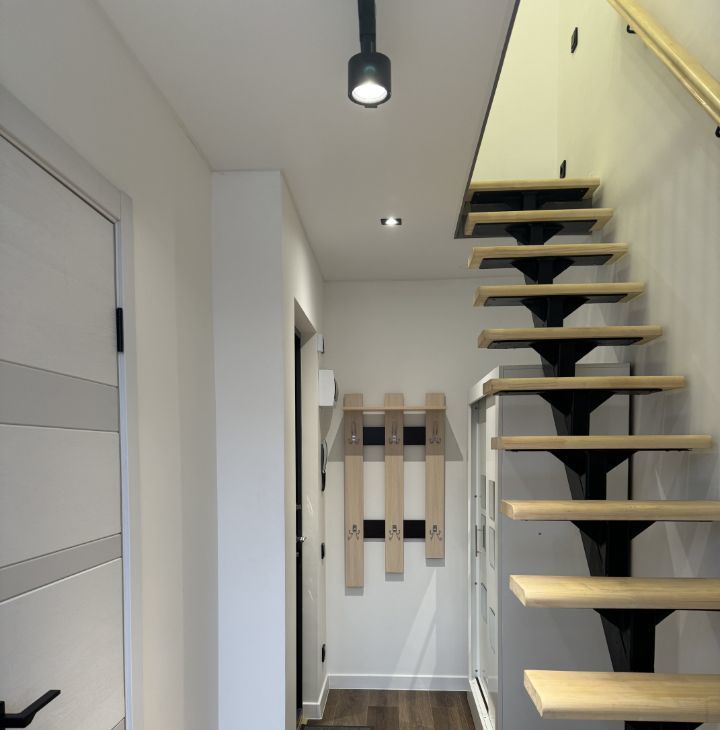 На 1 этаже расположен шкаф, кухня, обеденный стол (раскладывается на 2 человека). На 2 этаже расположен рабочий кабинет, спальное место. Есть еще свободное место для перспективного расположения мебели. Может по согласованию приобретено будущему арендатору на его вкус.