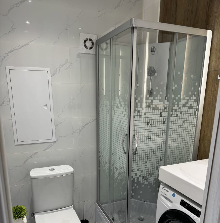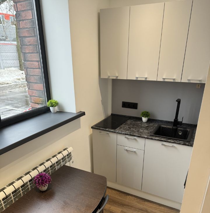 В студии выполнен дизайнерский ремонт в стиле high-tесh с новой мебелью и техникой. Есть все необходимое для жизни (полноценный душ, стиральная машина, кондиционер с климат контролем, варочная панель, холодильник, СВЧ печь, Wi-Fi, и тд). Кухонный стол при необходимости раскладывается на 2 человека. Ремонт делал как для себя.