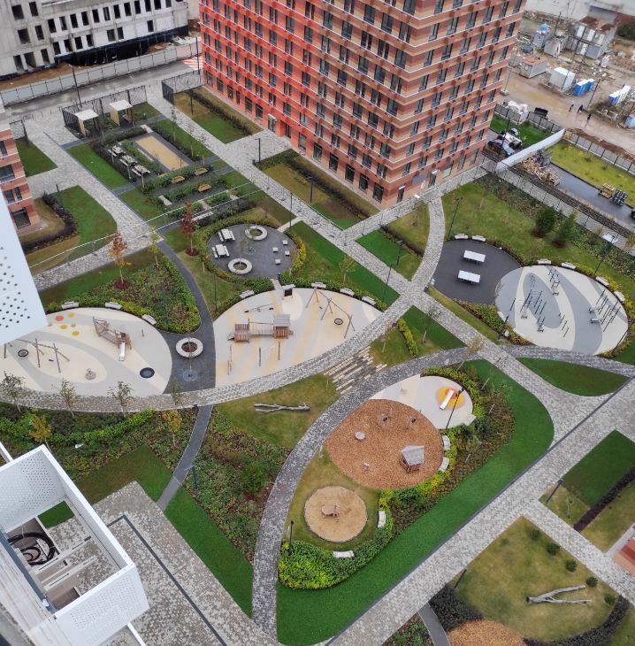 - закрытый двор-парк, где тихо и уютно. Много зелени, нет машин и площадок