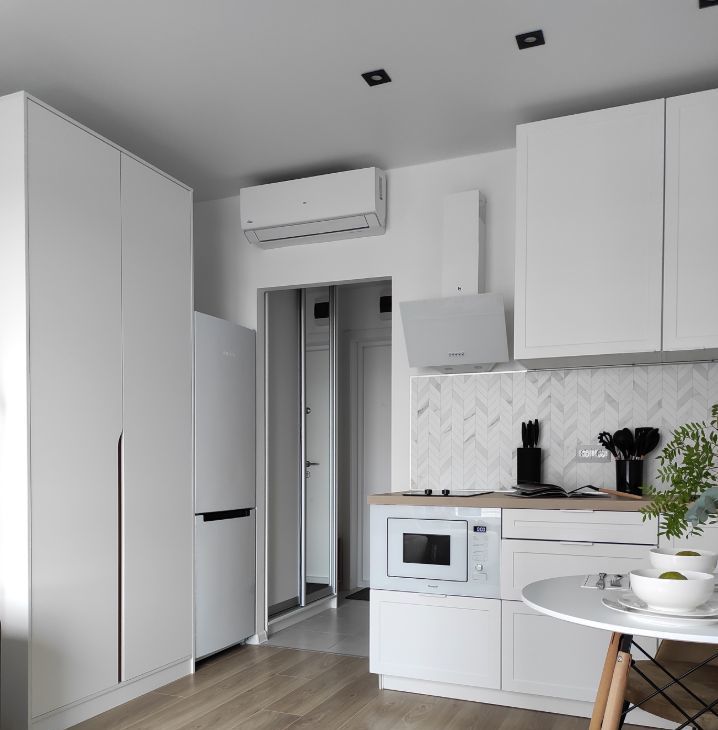 Бытoвая тeхникa: cтирaльнaя машина, xолoдильник, вытяжка, ваpoчная пaнeль, телeвизop, электpический чайник, кондиционер, утюг, а так же все необходимое для комфортного проживания.
