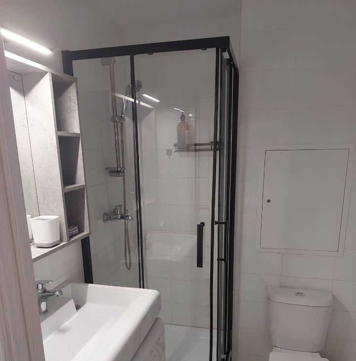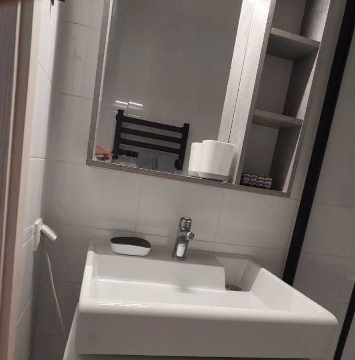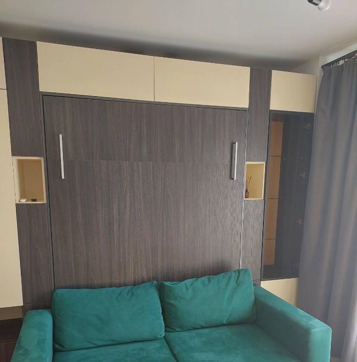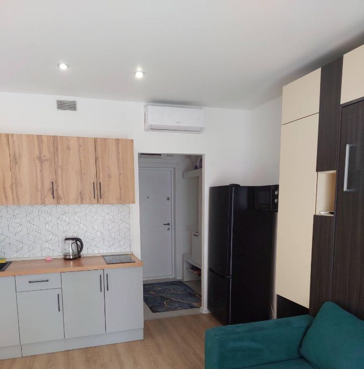 В квартире сделан дизайнерский ремонт, который создаёт уют и комфорт. Пространство студии продумано до мелочей: есть вся необходимая мебель как на кухне, так и в жилой зоне. Для вашего удобства установлена современная техника: холодильник, кондиционер, стиральная машина и телевизор. В ванной комнате обустроена душевая кабина. Окна квартиры выходят во двор, поэтому в квартире тихо и спокойно.