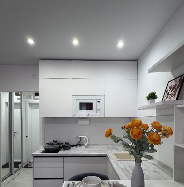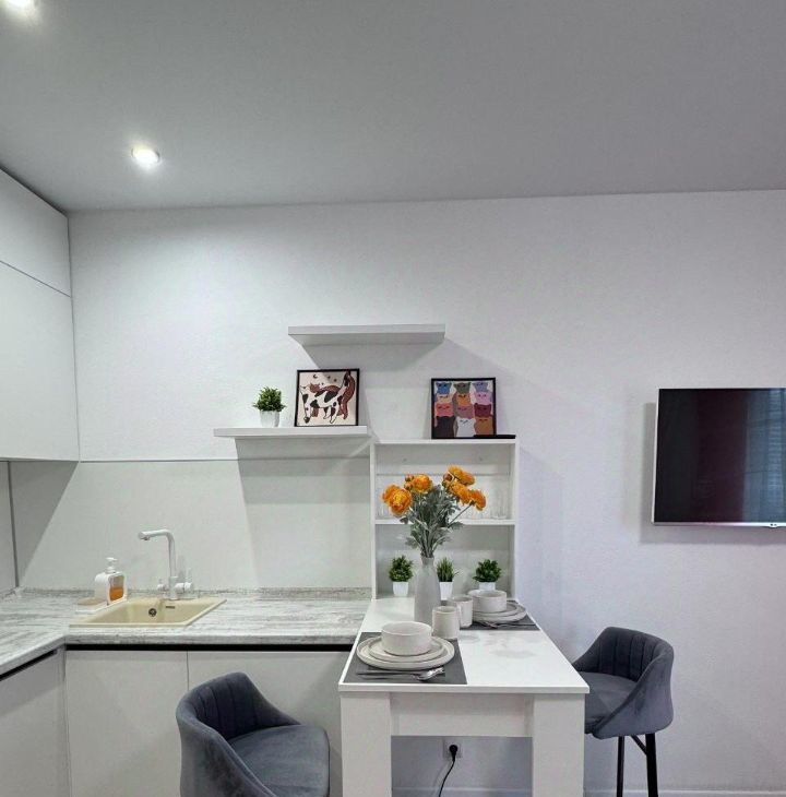 Предлагается уютная студия площадью 20 м² с дизайнерским ремонтом и полной меблировкой. Из окон открываются живописные закаты. Квартира находится на 13 этаже — дом оборудован 4 скоростными лифтами.