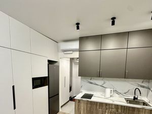 Делали с фокусом на удаленную работу: есть барная стойка плюс отдельный стол - никаких микро-столов, за которыми не разместить ноутбук!