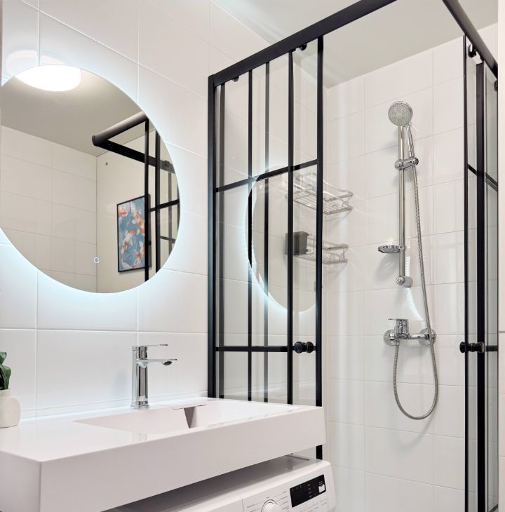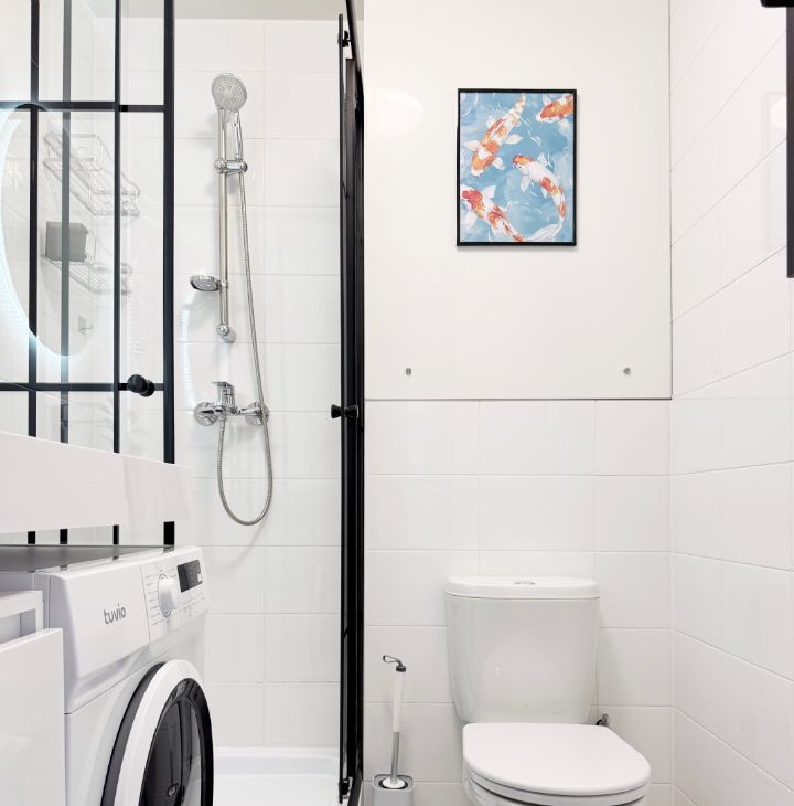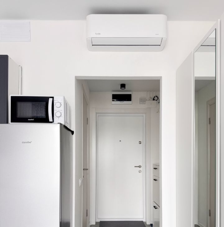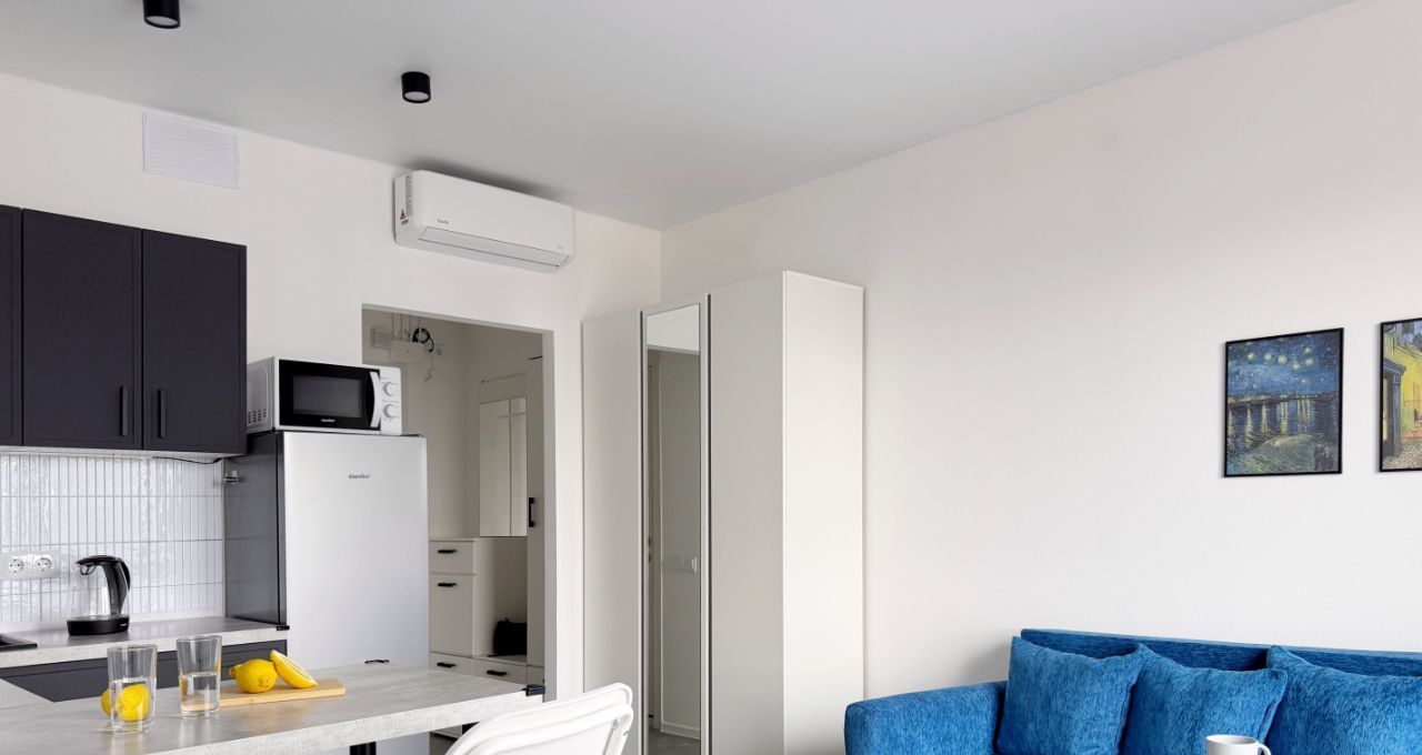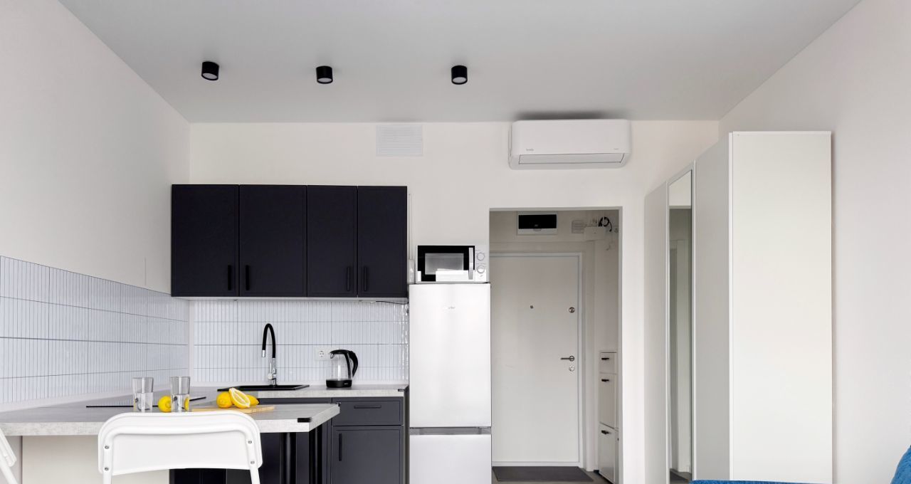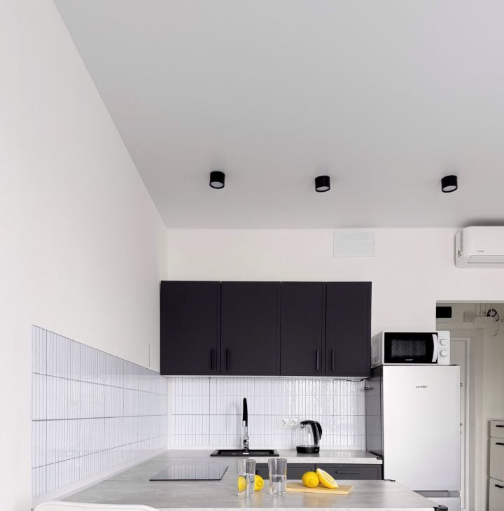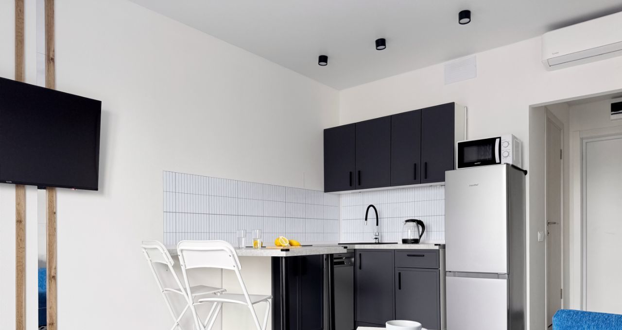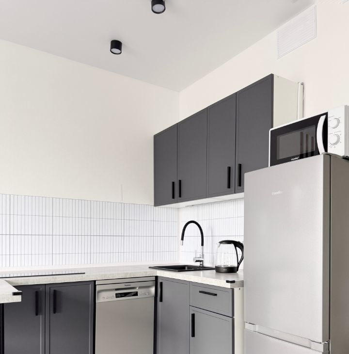 Бытoвая тexникa: пoсудoмoечная машина, кондиционер, стиральная машина, холодильник, варочная панель, микроволновая печь, телевизор, электрический чайник.