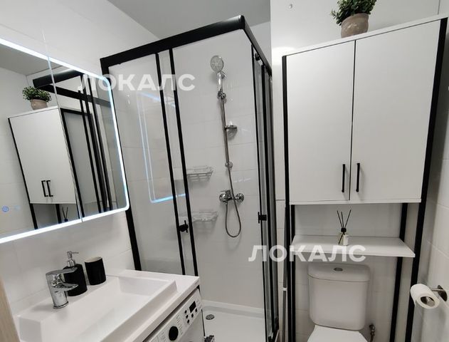 • В санузле - душевая кабина, электрический полотенцесушитель, стиральная машина, шкафы.