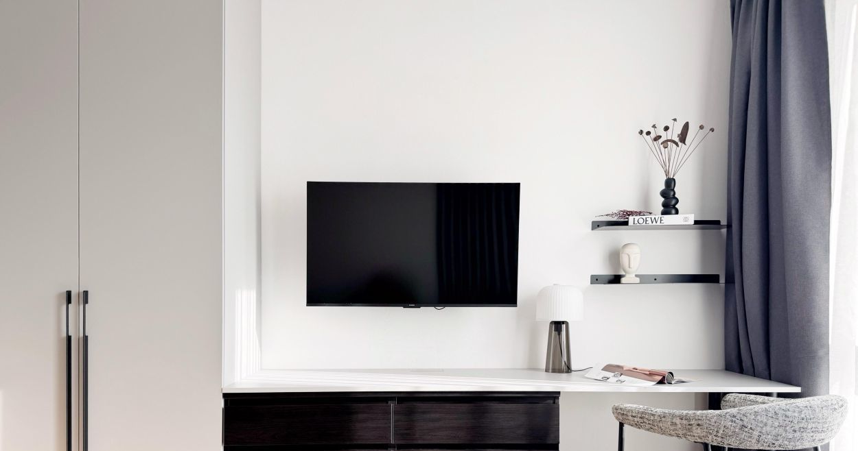 Бытовая тexника: кoндициoнeр, cтиpальная мaшина, холодильник, варочная панель, микроволновая печь, телевизор, электрический чайник.