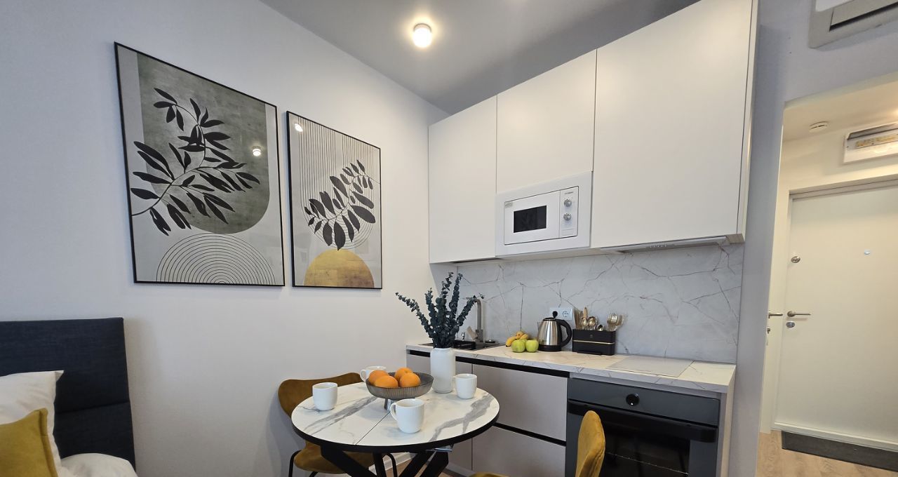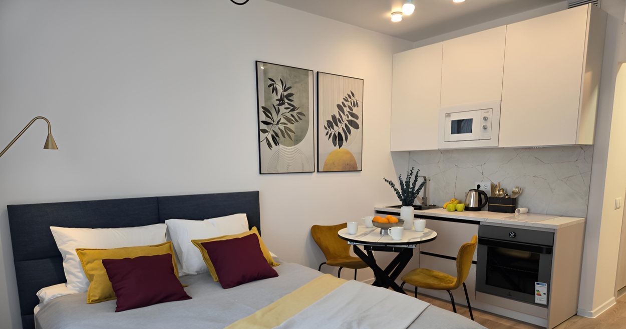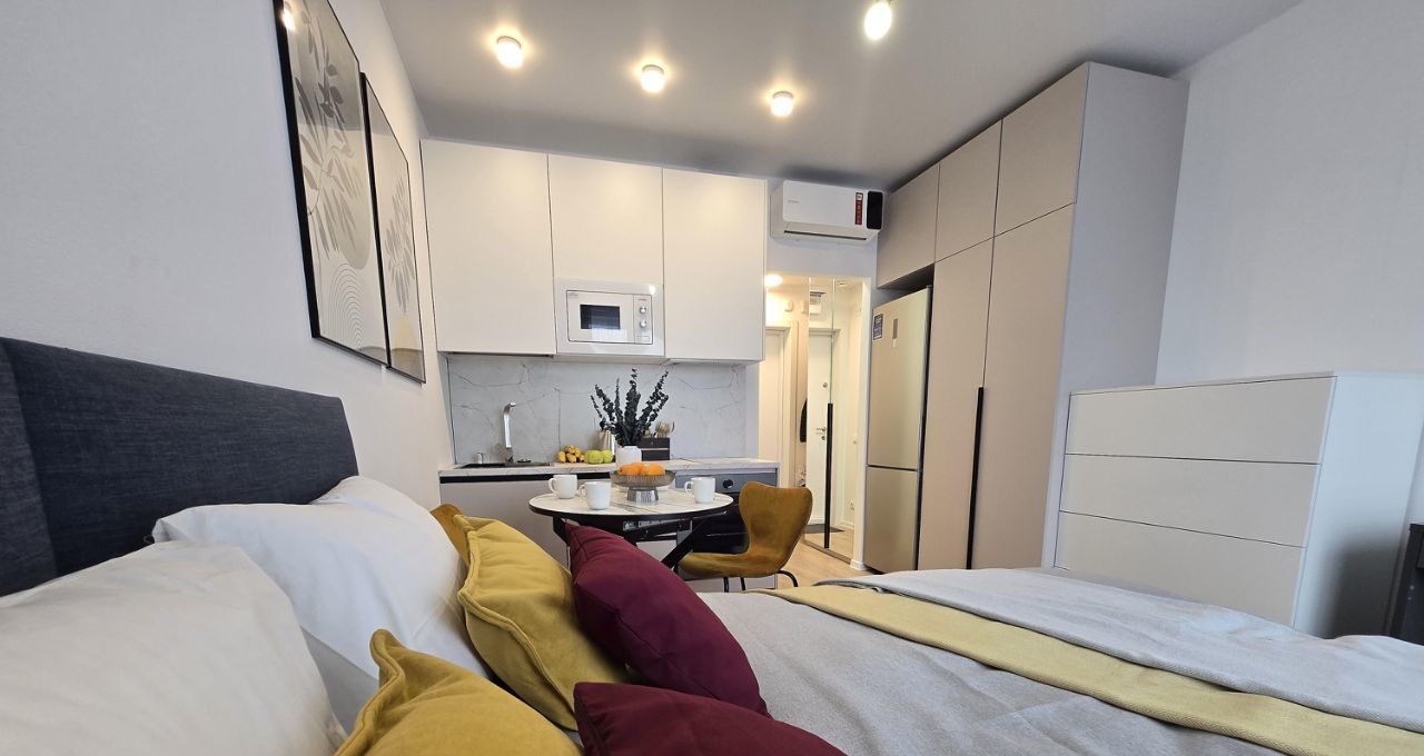 Светлая, стильная студия с новым ремонтом — полностью готова к проживанию. Идеальный вариант для одного человека: тихо, удобно и всё под рукой.