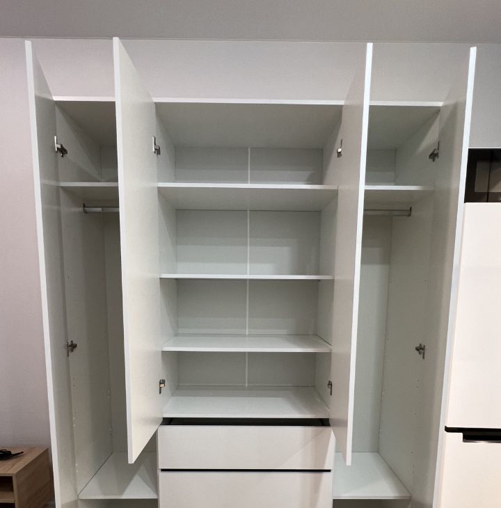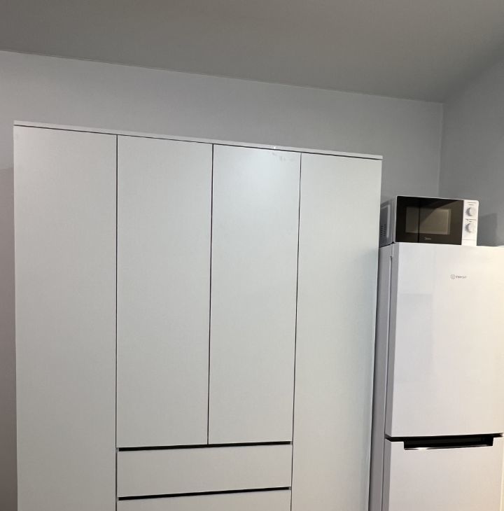 холодильник, микроволновая печь, электрическая варочная панель с духовым шкафом, стиральная машина.