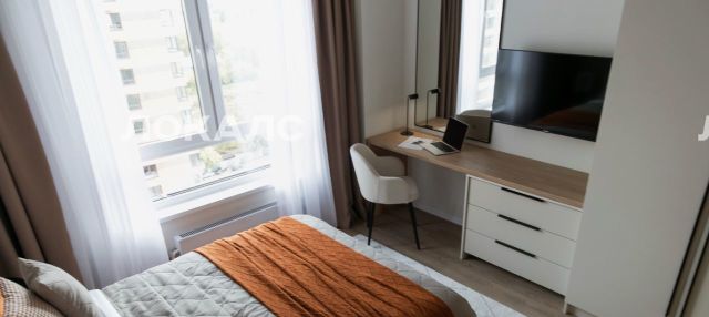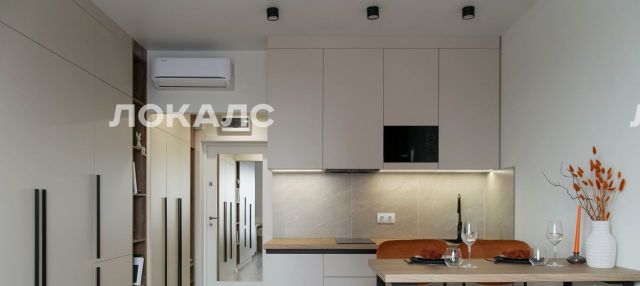 Квартира укомплектована всей необходимой мебелью и бытoвой тeхникой: стиральная-сушильная машинка, встроенный холодильник, посудомоечная машинка, микроволновая печь, индукционная плита, смарт-телевизор, кондиционер, встроенные шкафы, кровать с ортопедическим матрасом и подъемным механизмом.