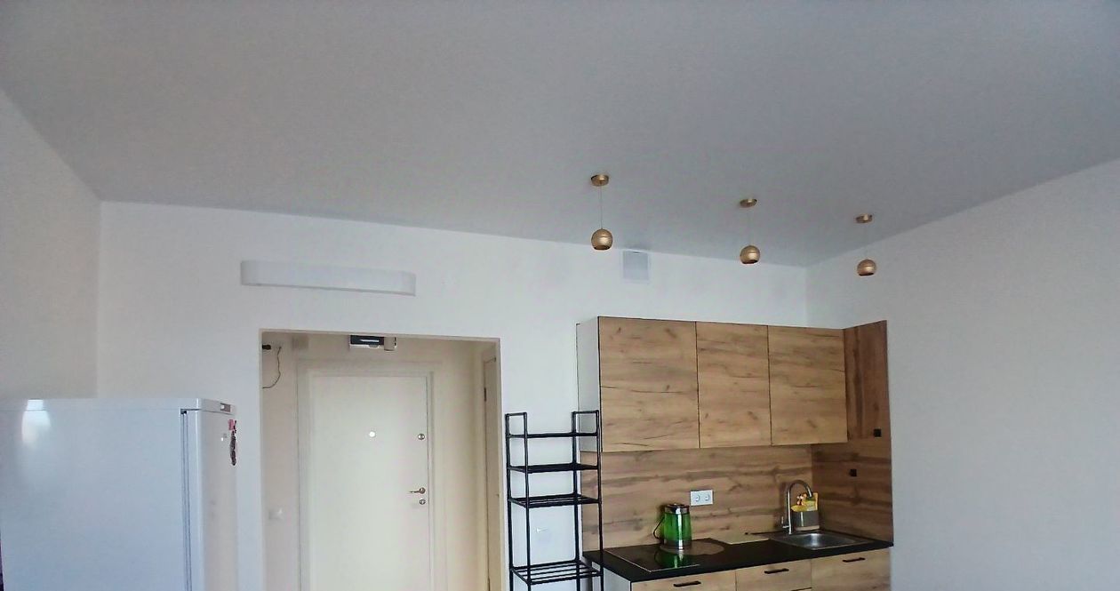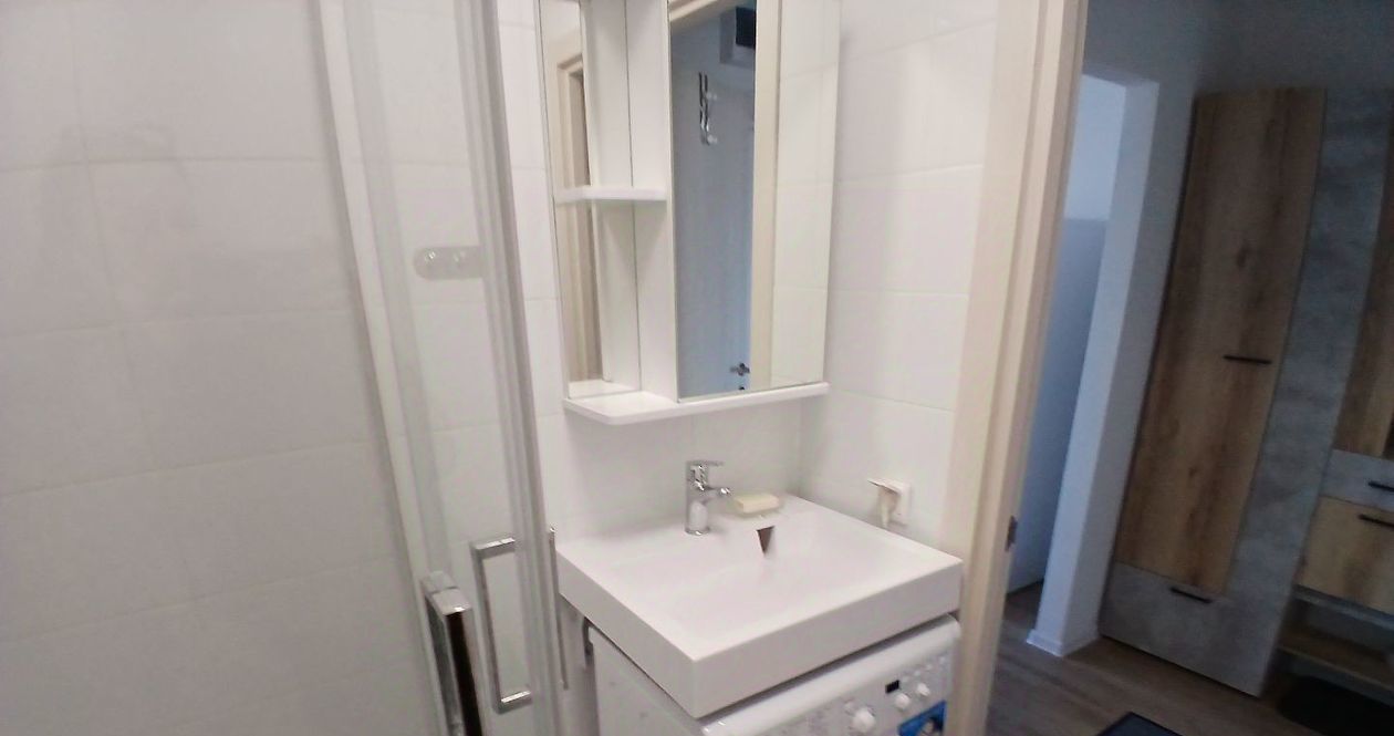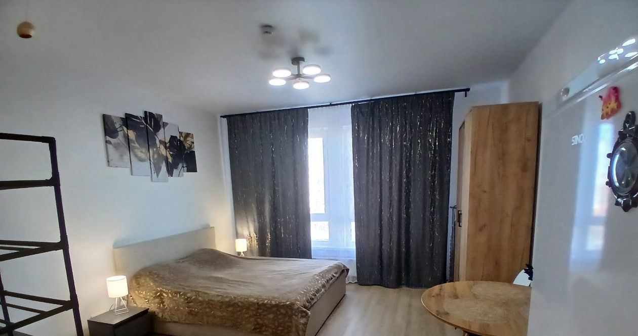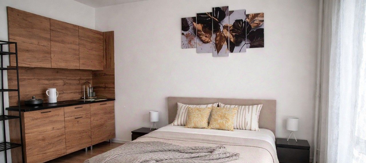 Светлая квартира с современным евроремонтом, полностью готовая для вашего комфортного проживания. В квартире есть всё необходимое: удобная кровать, стол, тумбы, места для хранения, а также кухонный гарнитур. Из техники доступны холодильник, стиральная машина, пылесос, утюг, электрический чайник и фен.