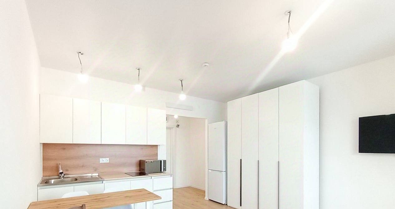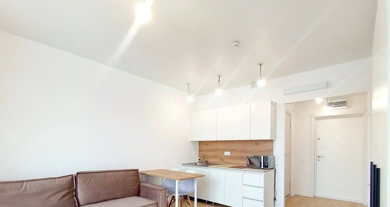 Сдаётся светлая квартира-студия с евроремонтом и совмещённым санузлом в ЖК Второй Нагатинский, без депозита!