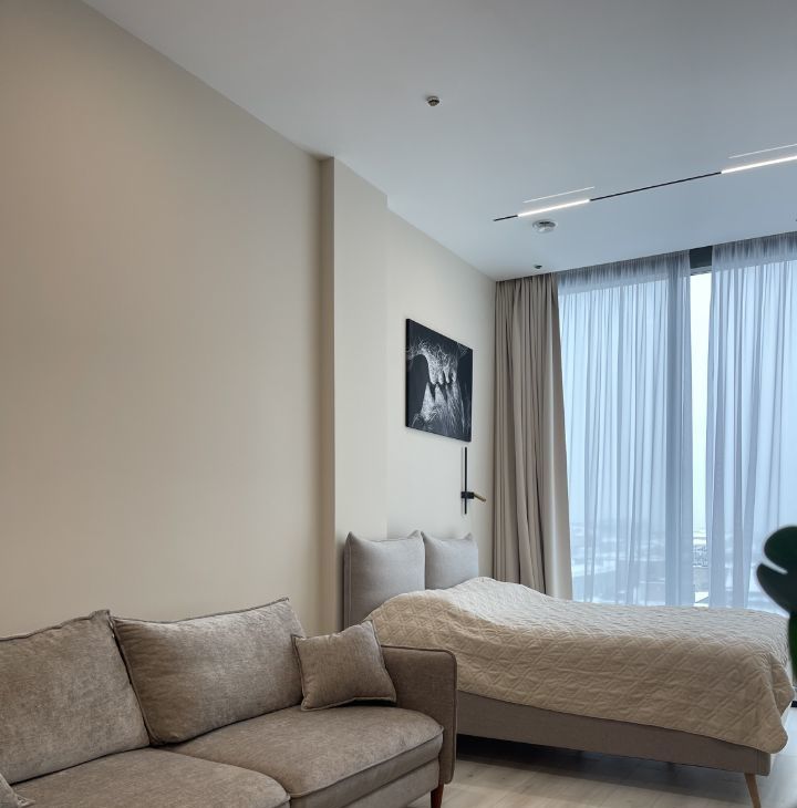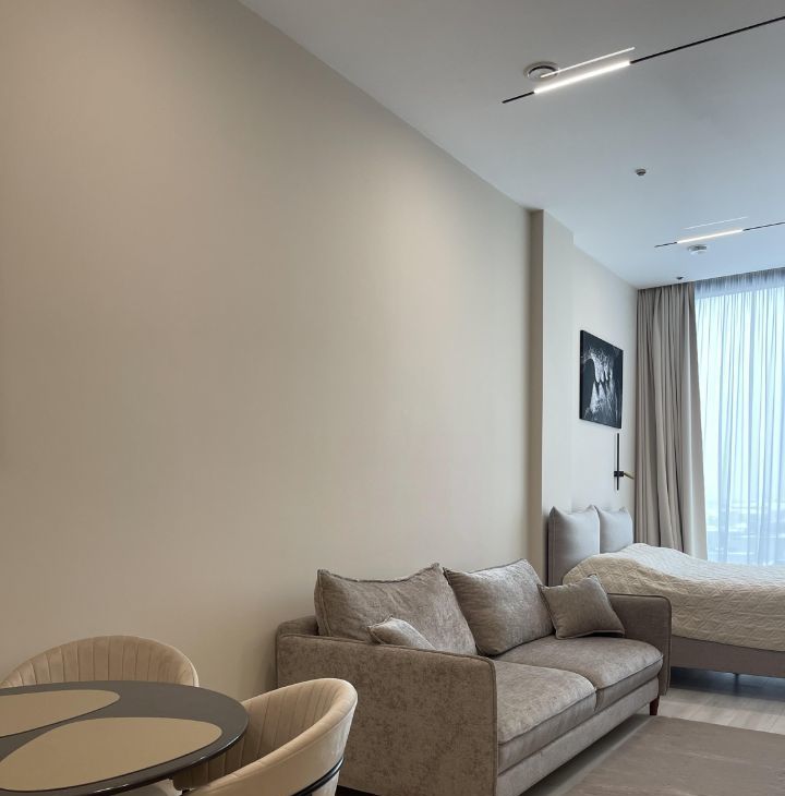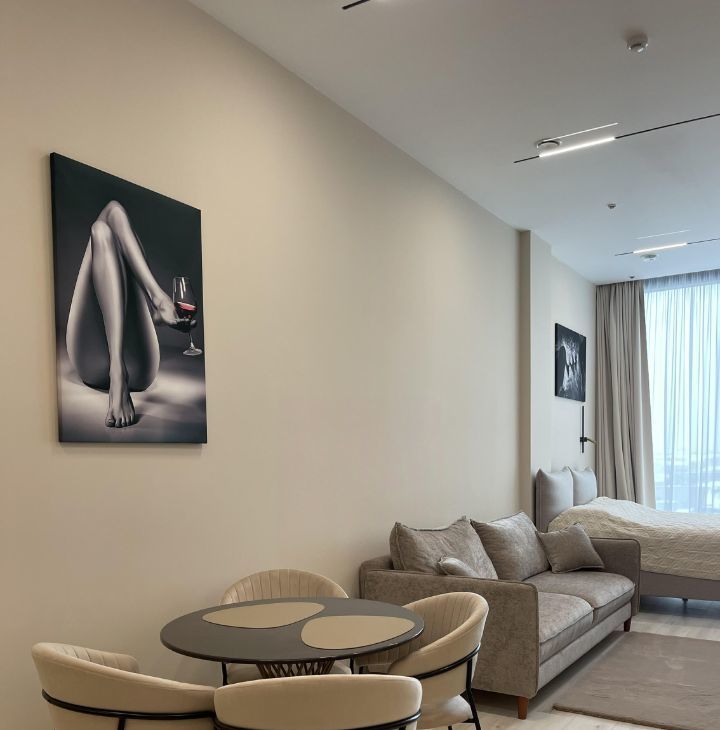 Предлагаем вашему вниманию стильные апартаменты-студию в аренду в районе метро "Маяковская". Удобное расположение — всего 5 минут пешком до метро. Окна выходят на улицу, что обеспечивает много естественного света.